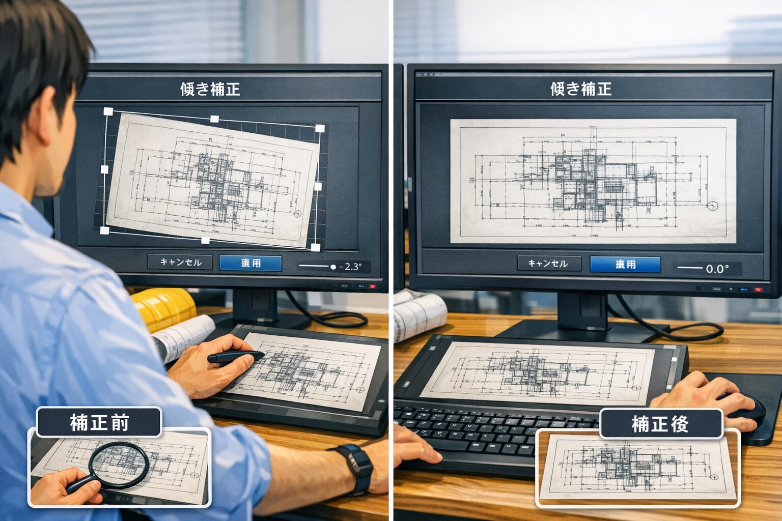 スキャンデータの品質は、補正処理のひと手間で大きく変わります。